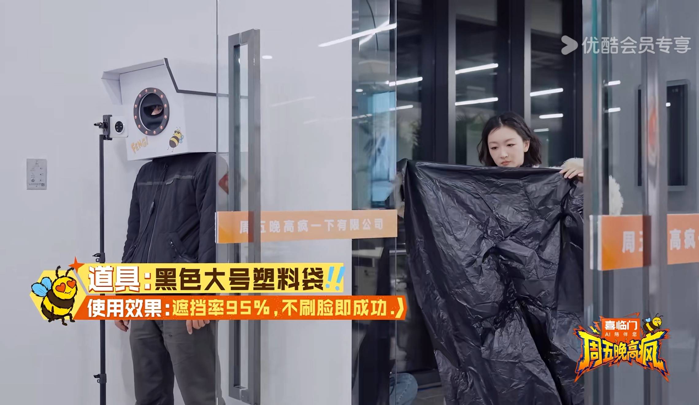 在职场体验的过程中,周一被黑衣人穷追不舍,大家完全顾不得形象四处狂奔寻找工位,王传君直接原地发疯反向“绑架”黑衣人。周五下班逃出大厦的时候,为了躲避“老板”李川的摄像头,各种天马行空的花式藏法也是超乎想象:高叶顺手拿了雨伞,魏大勋拿了巨大的花毛毯把自己盖住,而周冬雨直接把巨大的黑色塑料袋套在身上。